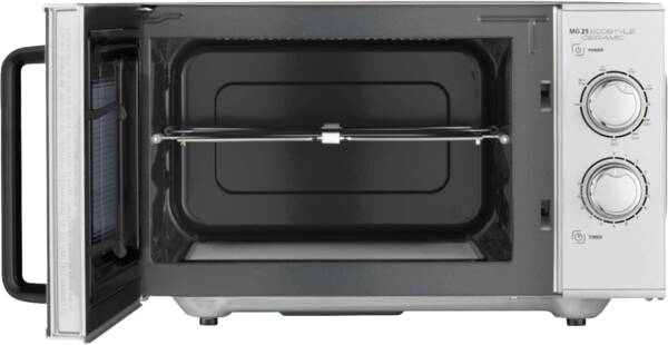 Kombi-Mikrowelle, 25 l Garraum, Grill, 900 Watt Mikrowellen-Leistung, 1.000 Watt Grill-Leistung, 5 Leistungsstufen, mechanische Steuerung, Timer, Keramikboden, Breite: 49 cm, Höhe: 28,5 cm, Tiefe: 41 cm