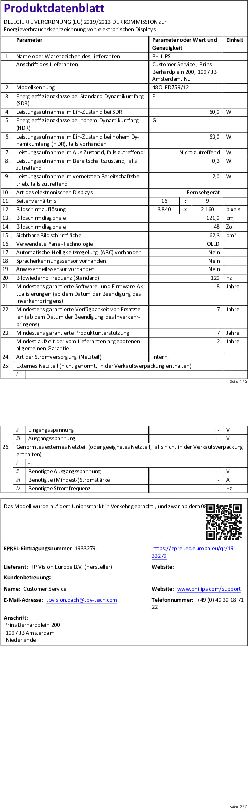 Philips TV OLED-Fernseher 48 OLED759/12 Top Preis